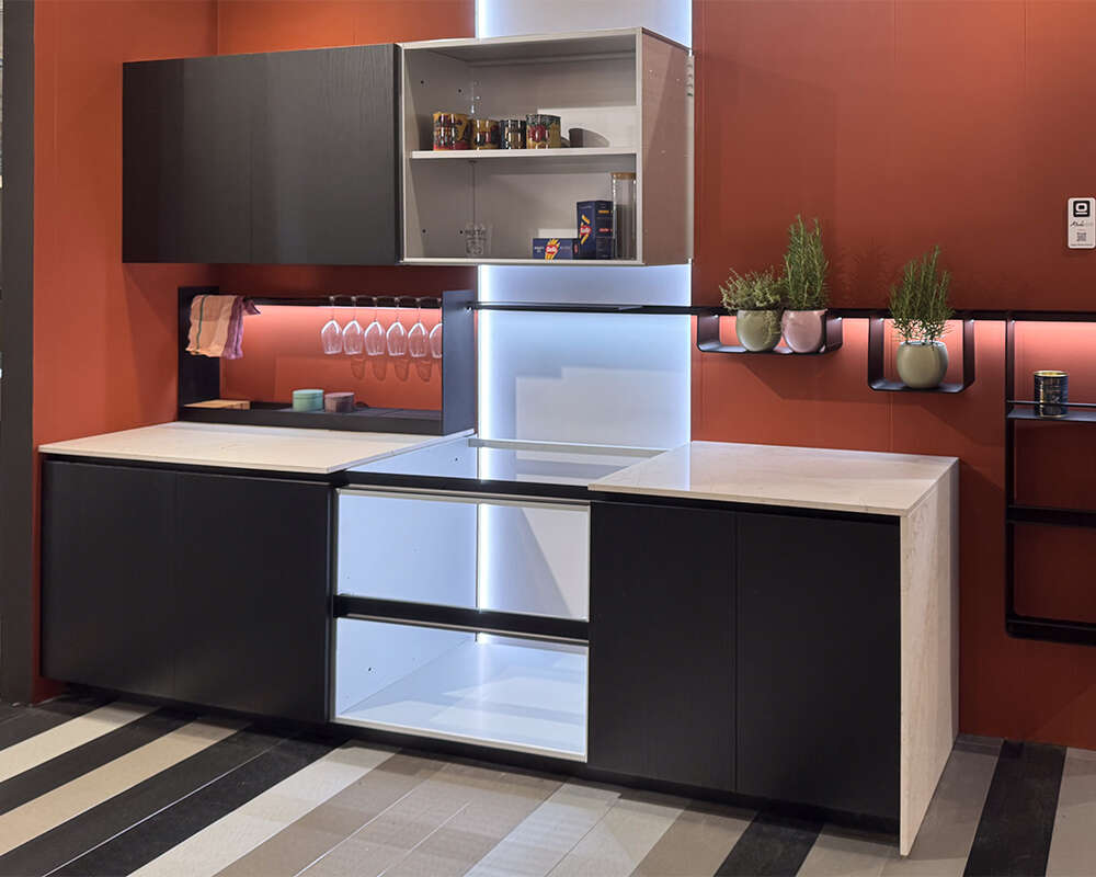 La base cucina Alubox Ossicolor è una struttura brevettata realizzata interamente in alluminio strutturale, progettata per garantire impermeabilità totale e stabilità nel tempo.