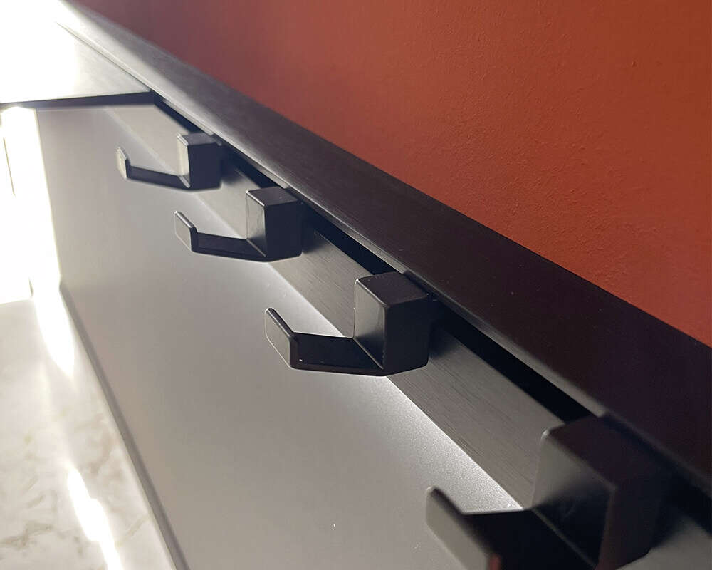 La barra tecnica Freedom 03 di Ossicolor è indicata per produttori che ricercano una barra accessoriabile professionale con illuminazione integrata per cucina moderna.