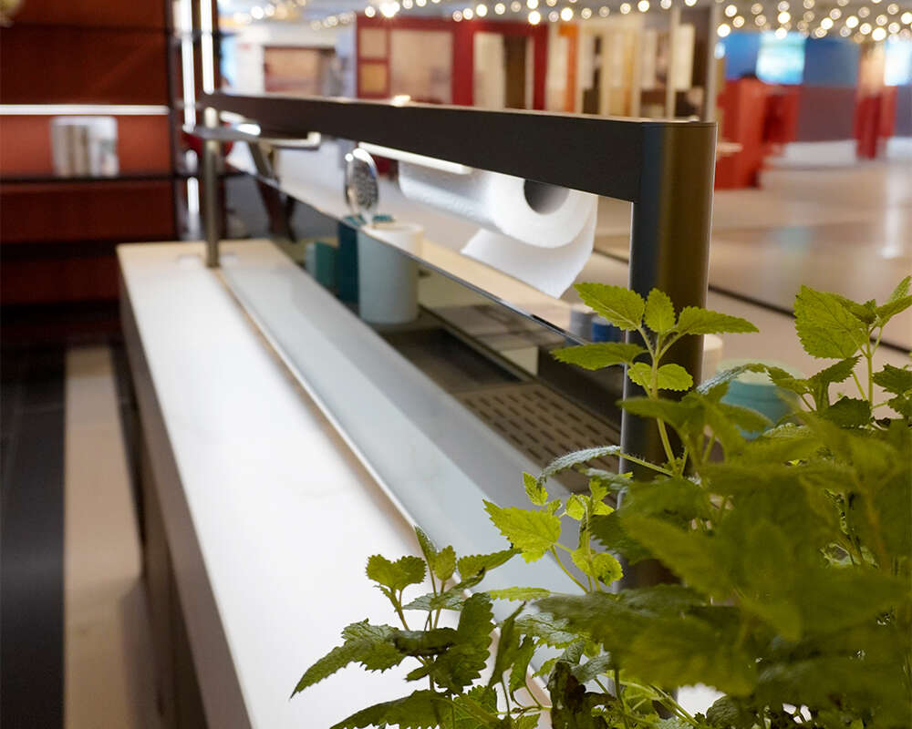 Il sistema Ponte Ossicolor è una struttura in alluminio progettata per installazione su isole e penisole cucina.