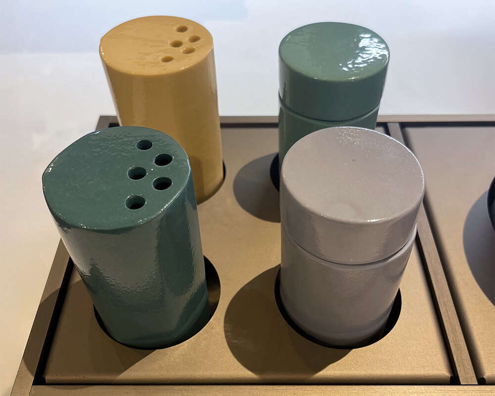 La linea Porcellana Ossicolor comprende accessori cucina realizzati in porcellana artigianale ad uso alimentare.